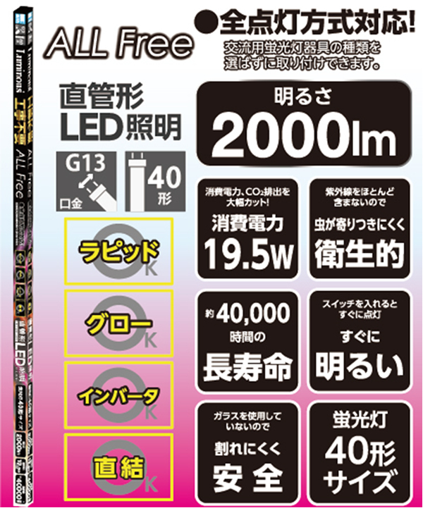 | 種類 | 【新発売】 G13-12CHN(40W高輝度タイプ) |